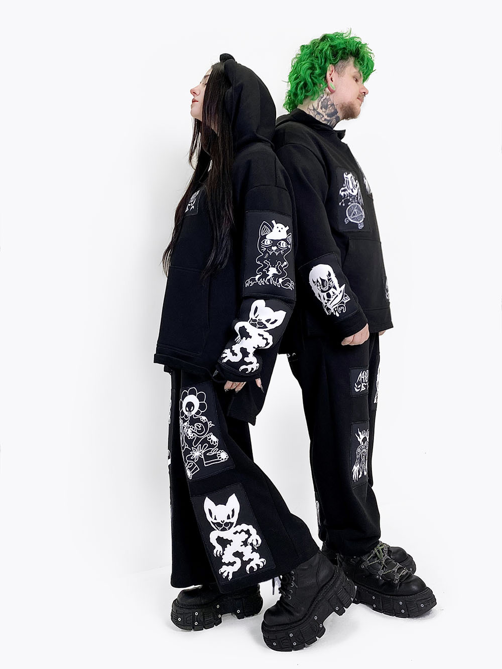 Уютный, объемный балахон полностью погружающий тебя во тьму. Ритуальные нашивки на груди и рукавах.