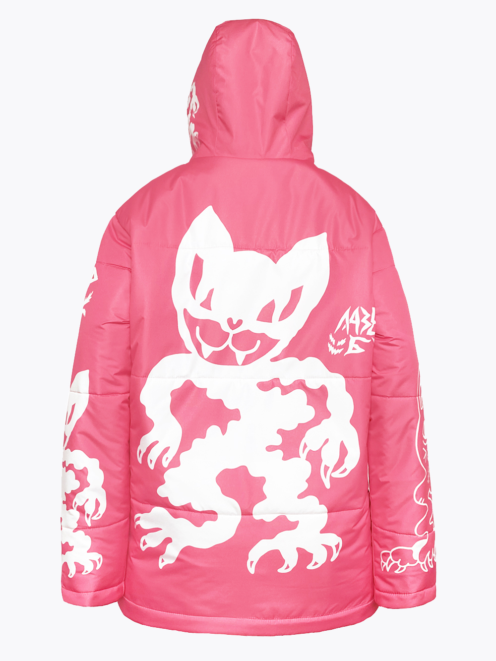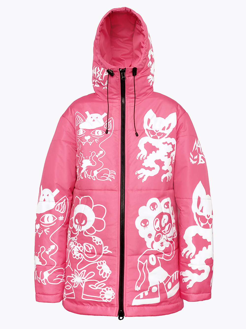 Запринтованный пуховик с двойным слоем утеплителя. Водоотталкивающая ткань.