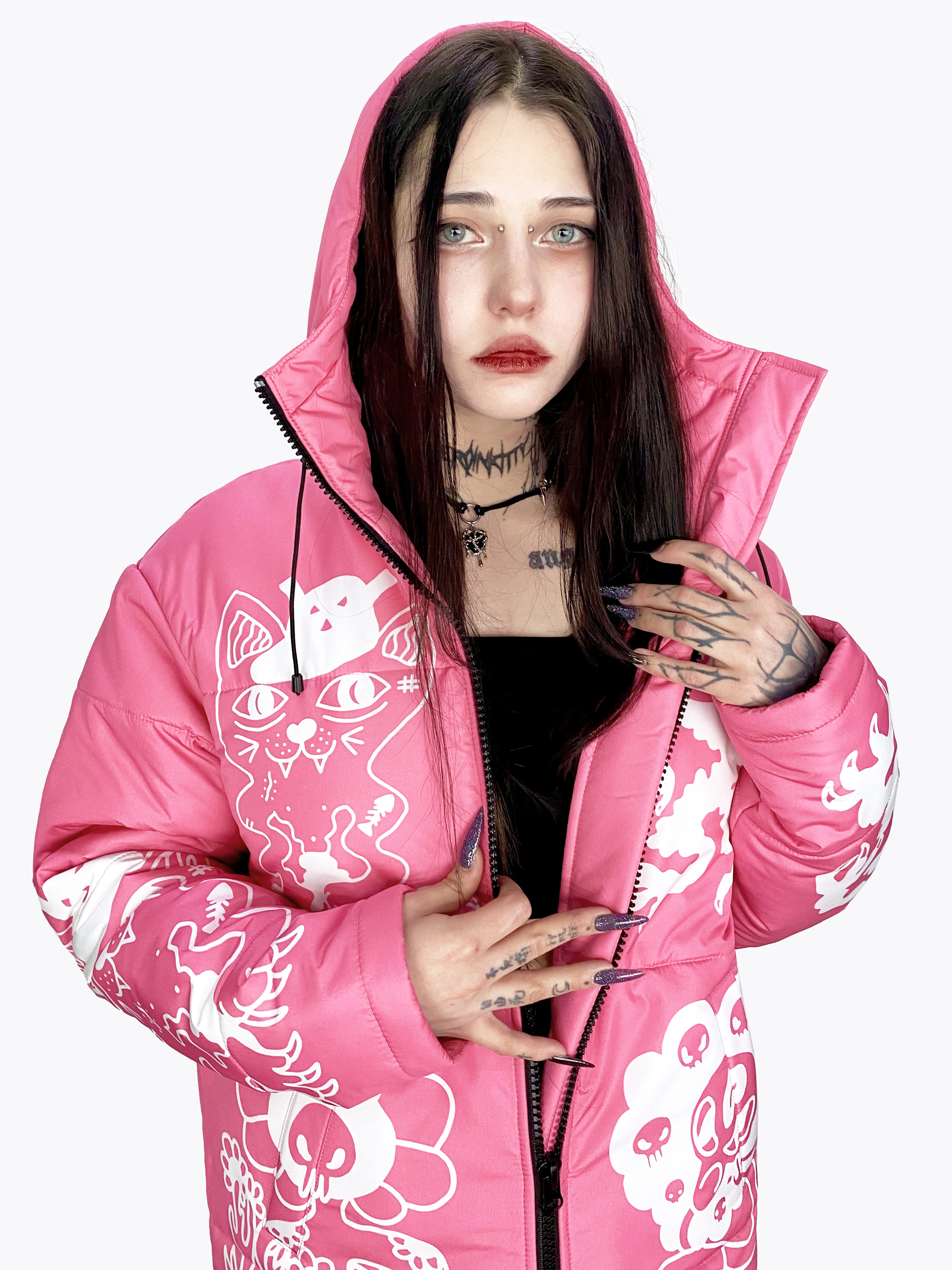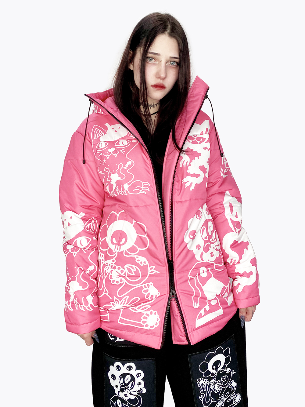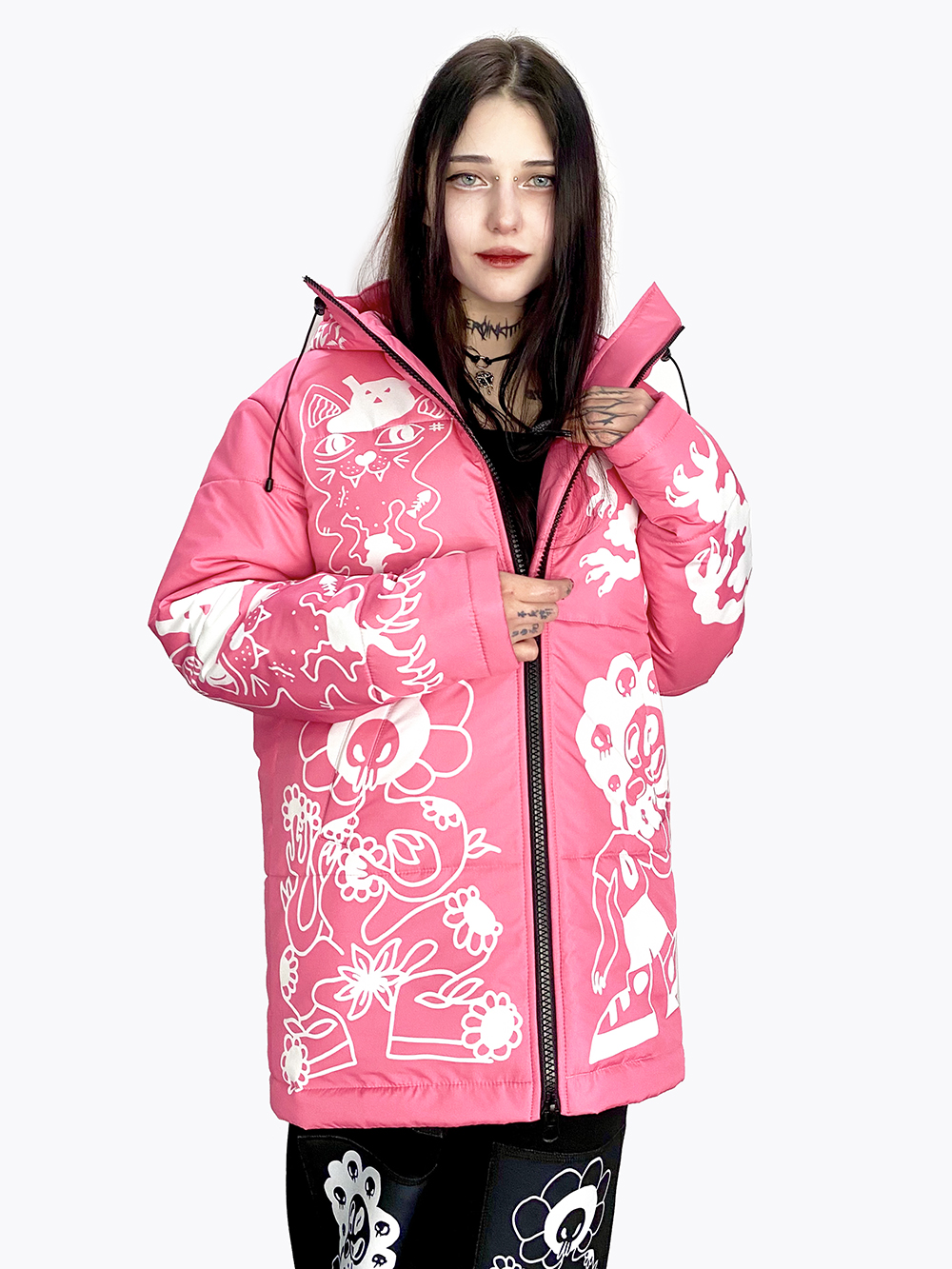 Пуховик «Коты и Цветы» розовый